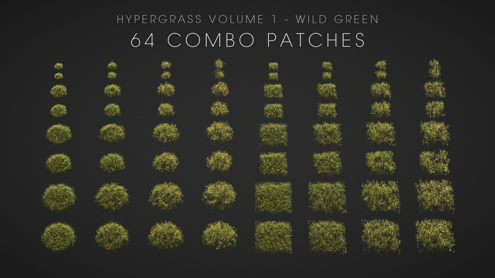Wild Green is the first volume in the HyperGrass library. Perfect for natural landscapes such as forest floors, rolling hills, mountain ranges and man-made lawns.